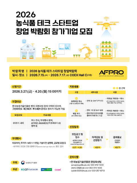 「2026 농식품 테크 스타트업 창업박람회 (AFPRO 2026)」참여기업 모집 공고